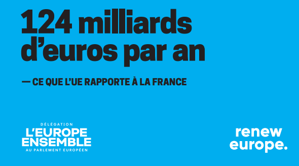 124 milliards d’€ par an — C’est la moyenne des retombées économiques pour la France grâce au marché unique et donc, à son appartenance à l’UE. Et ce, sans compter tous les avantages non économiques : sécurité, défense, échanges culturels, politique sociale et environnementale, place des Européens dans le monde.